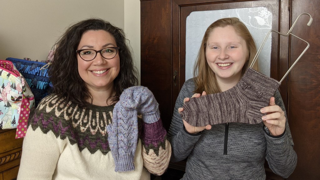 We are a mother-in-law (Erica) and daughter-in-law (Daphne) duo who love to spend our free time crafting. Both of us are passionate about knitting. We spend a lot of our time planning our next knitting projects while our hands are busy knitting our current projects. We also enjoy crochet, although we haven’t been crocheting for long. Erica has picked cross-stitch back up after a four-year break, and Daphne is trying her hand at embroidery, spinning, and sewing. We both love to modify patterns and design our own.