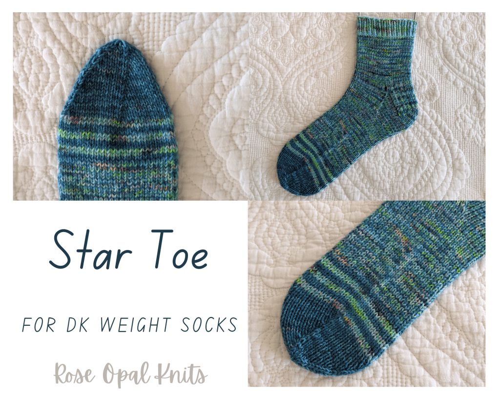 The Star Toe for DK Weight Socks is for personal use only. Do not distribute for free or for profit. Please contact Erica at roseopalknits@gmail.com with any questions or comments.